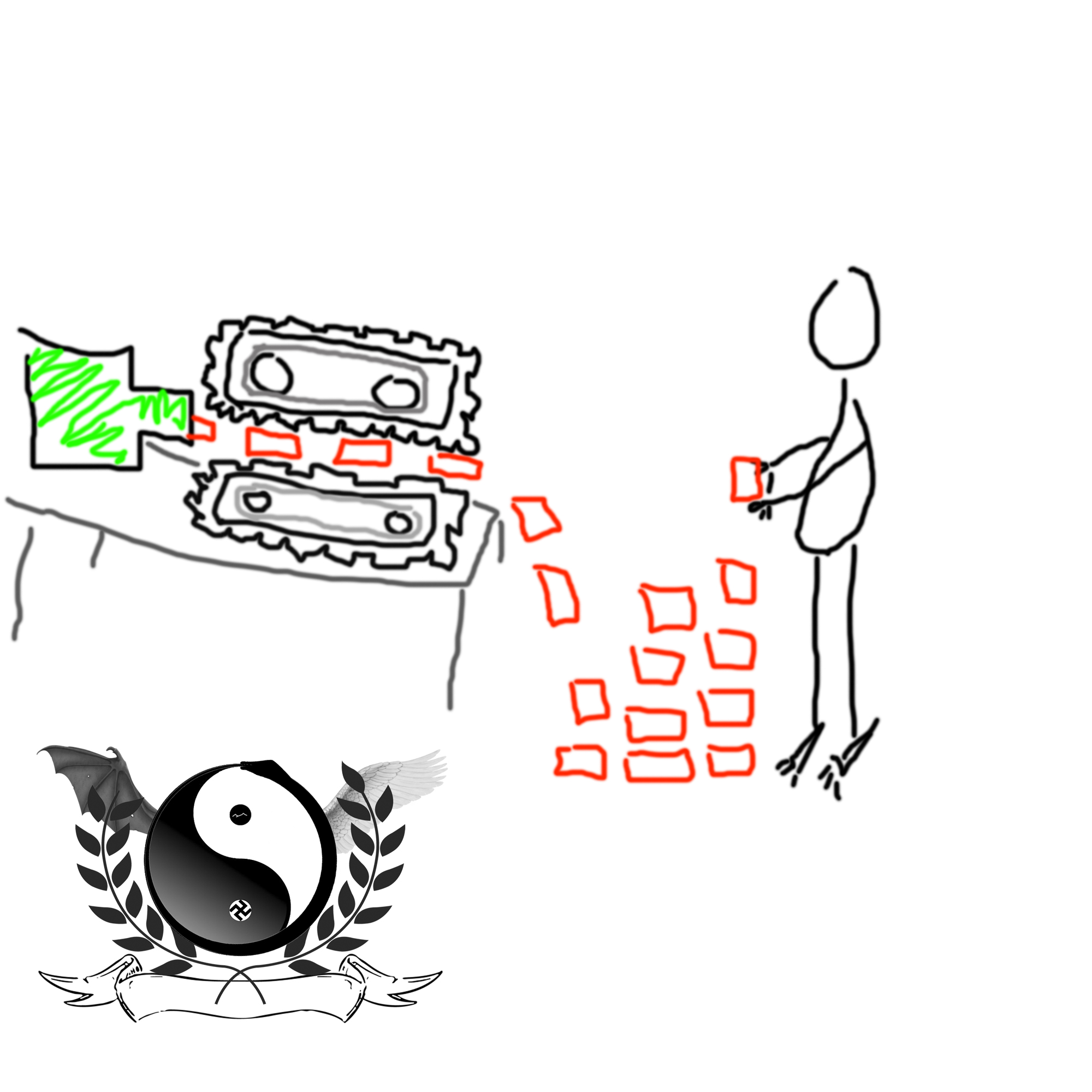 _Բա դո՞ւ. բա դո՞ւ խի չես պատրաստվում, հեսա կամբատը գալում ա,_ ընթերցողին, այսինքն` քեզ, հարց է ուղղում շարքային Դրուիսը,_ դու էս չաստից չե՞ս,_ ընթերցողը, այսինքն` դու, հարցական դեմքով նայում ես էս տողերին, յանի էս ինչ մի ինտերակտիվ պատմվածք ա, բացասական պատասխան տալիս շարքային Դրուիսին ու շարժվում առաջ` չմոռանալով ևս մեկ անգամ ընթերցել այս պարբերությունը: